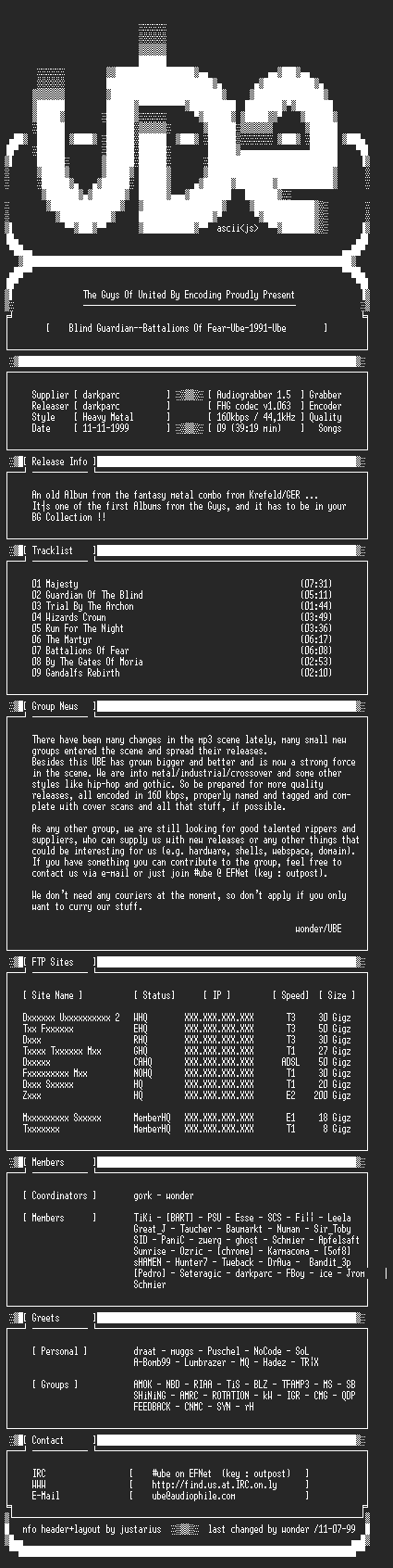 NFO file for Blind.Guardian--Battalions.Of.Fear-1991-UBE